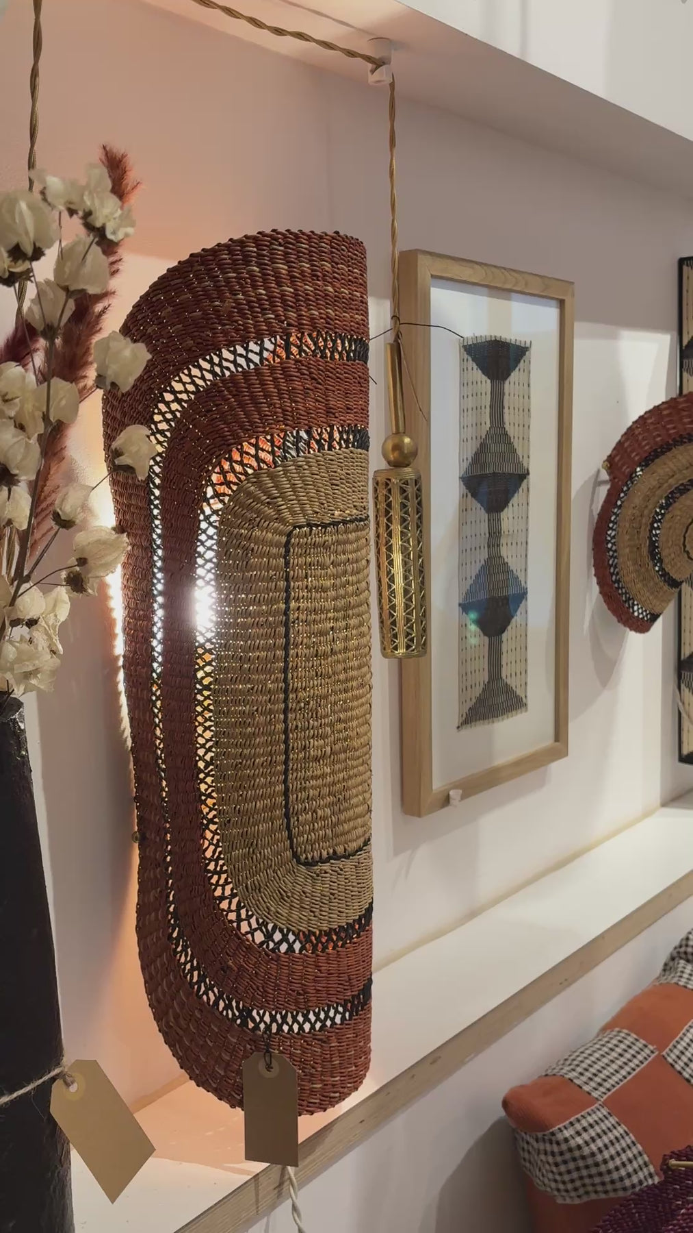 Luna Wall Lampshade – Large | Handwoven Straw Lighting with Coloured Pattern
