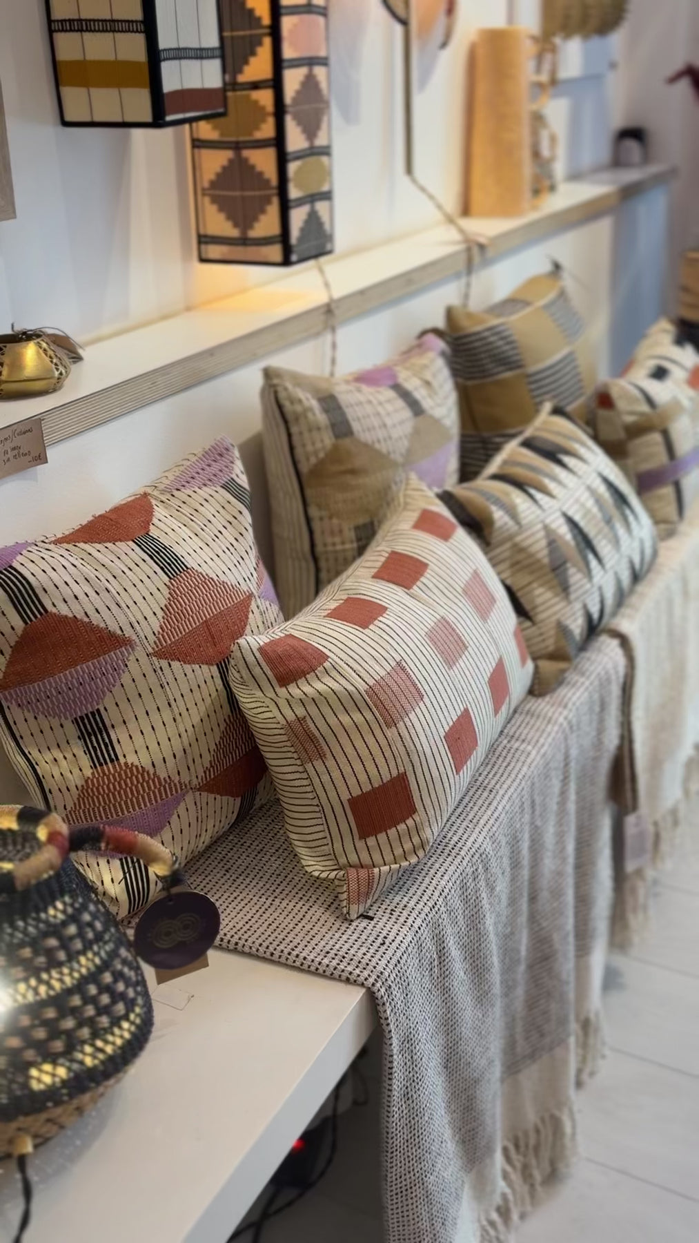 Square cushion handwoven in Ghana from authentic Kente textile. The Throne Cushion blends heritage weaving with contemporary colour combinations, bringing depth and character to sofas, armchairs, or beds. Ethically handmade and finished with care by Golden Editions.
